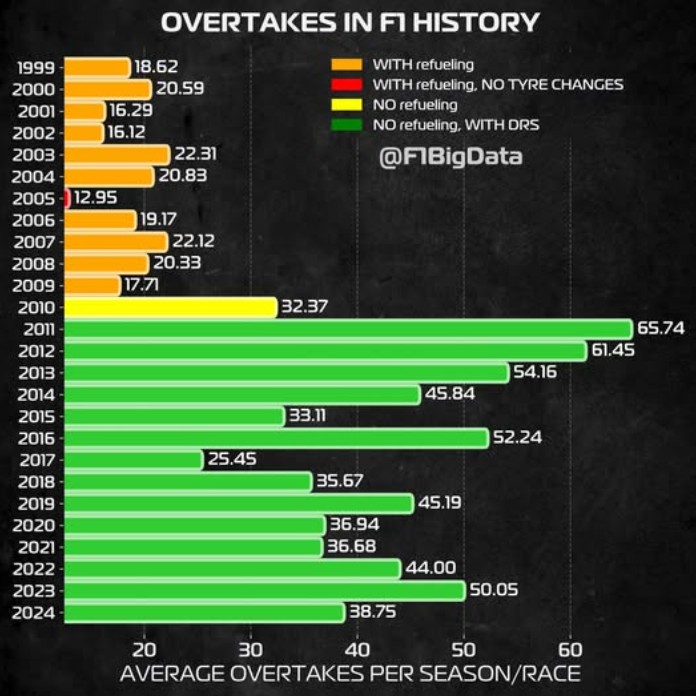 Prepac, ale to je honenie si nad cislami. Nehovorim, ze neboli aj normalne predbiehacie manevre pocas DRS ery, ale obist niekoho na rovinke lebo mam nieco co super nema zdaleka nema hodnotu pekneho suboja na brzdach ci v zakrutach. Radsej uvidim dva poriadne suboje ako 10 DRS wannabe manevrov