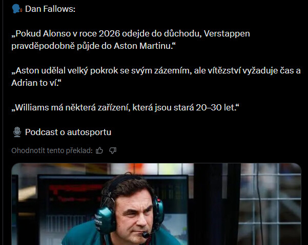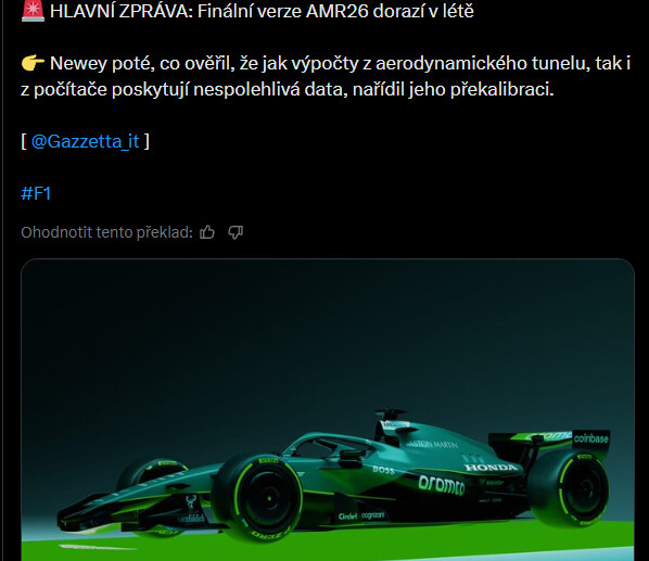 Tak ty spekulace co se šíří… tak beru to, že Honda nemá ani baterii a Newey udělá základ na pravidla až v létě 26, takže 9 závodů budou rádi, že nebudou poslední víš co, píšou to spekulanti, tak to bude pravda