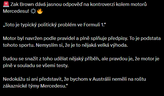S motorem Mercedesu to dopadne dobře. To je jisté…pořád bude konkurenceschopný, i když to dříve či nejpozději přiští rok změní… Budete si muset na bulení najít něco dalšího. Já vám věřím, určitě se něco najde, máte v tom zde bujarou historii, neřešit sebe ale druhé, fňukny.