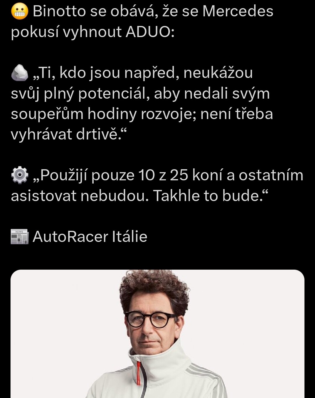Však víme jak to dělali 2014, měli takovou výhodu že si to přiškrcovali, někdo to od Vás přeci přímo potvrdil. A Binotto ví s kým maj tu čest.