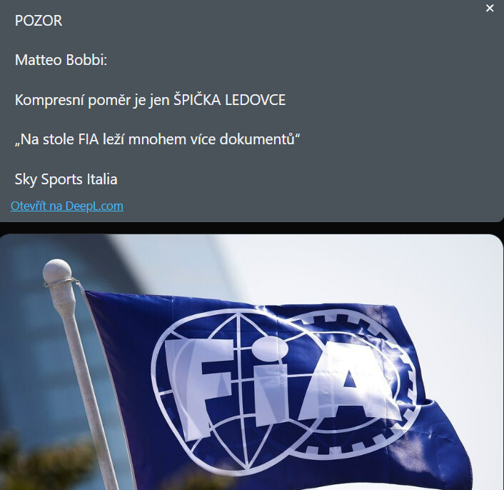Hele já nemám problém s tím, aby se to vyjasnilo, nicméně pokud Mercedes postavil motor dle pravidel, tak by měl možnost s tím jezdit. To je celé. Že to následně upraví a budou k tomu důvody, to se nedá nic dělat, ale nějaká štábní kultura být musí. Nechávám to na FIA.