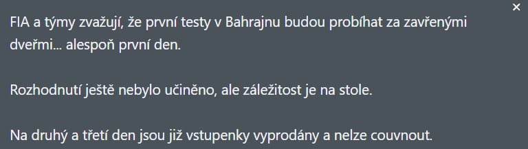 Vam nepride vobec zvlasne nikomu ze to riesil so Sulejmanom co sa ma co k tomu vyjadrovat sef FiA ved nato je tu organ…to ako keby obvineny povedal ze je nevinny lebo si to aj minister vnutra mysli…