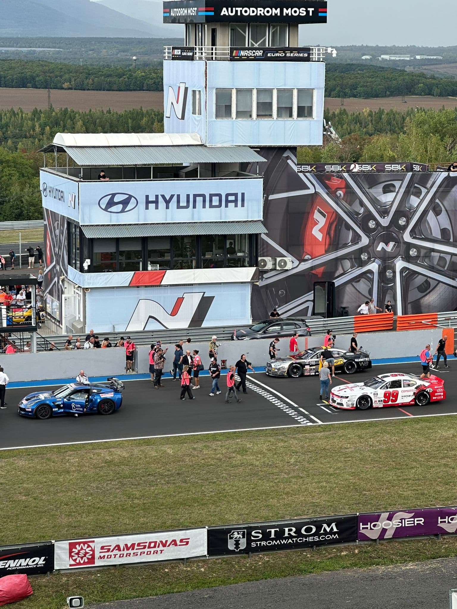 Ten nascar je fakt gigantickej. Ma to rozmer skoro jako F1. Most neni vhodna trat na zavod tehle aut… Pro porovnani Nascar s civilni vettou.